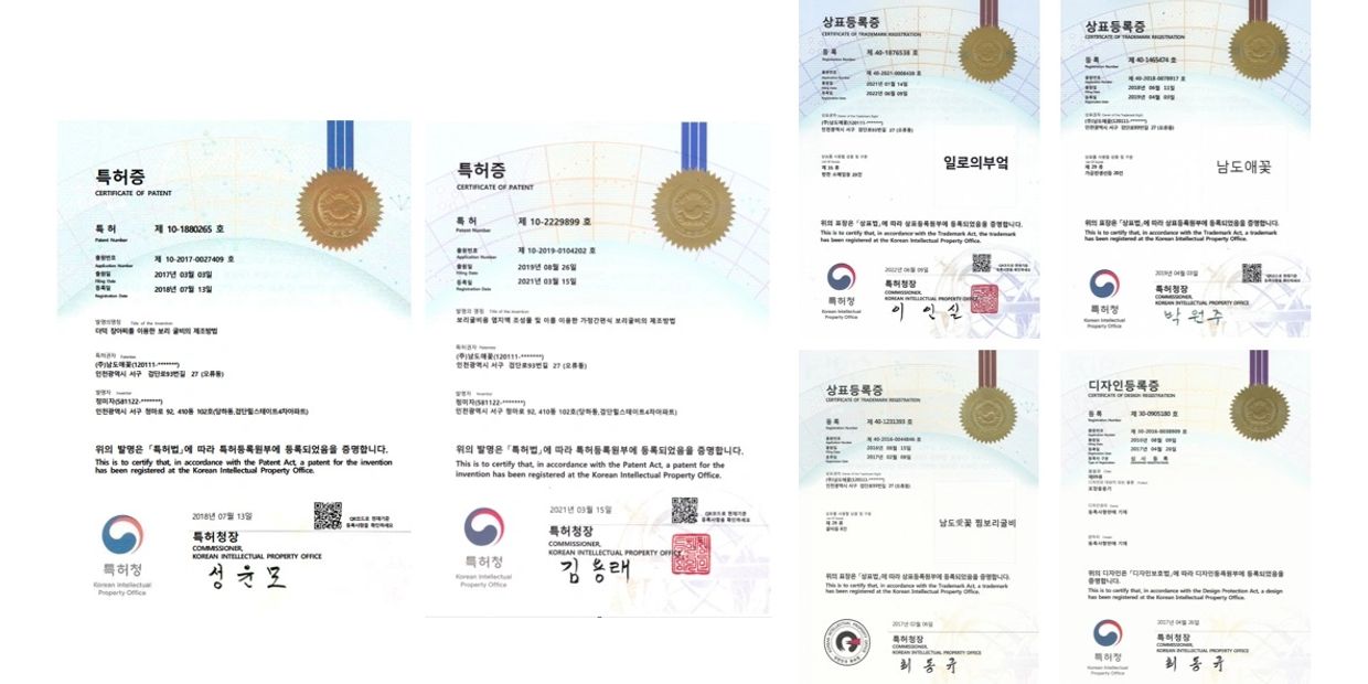 Holding 2 patents, 22 trademark rights, 1 international trade mark right(PCT Madrid), 3 design registration rights